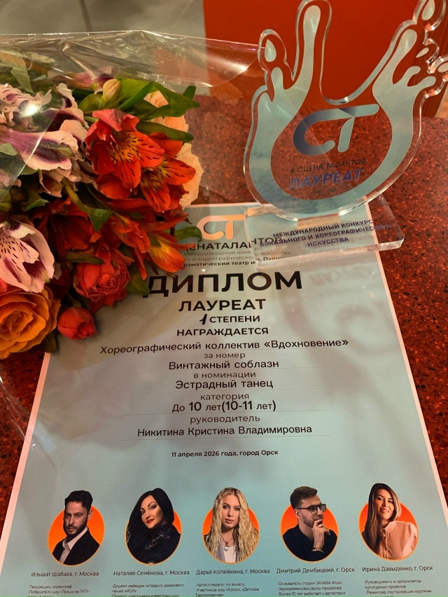 Сегодня в Орском Драматическом театре проходил международный конкурс хореографического и вокального мастерства «Сцена талантов» в котором принял участие и наш коллектив эстрадного танца «Вдохновение».